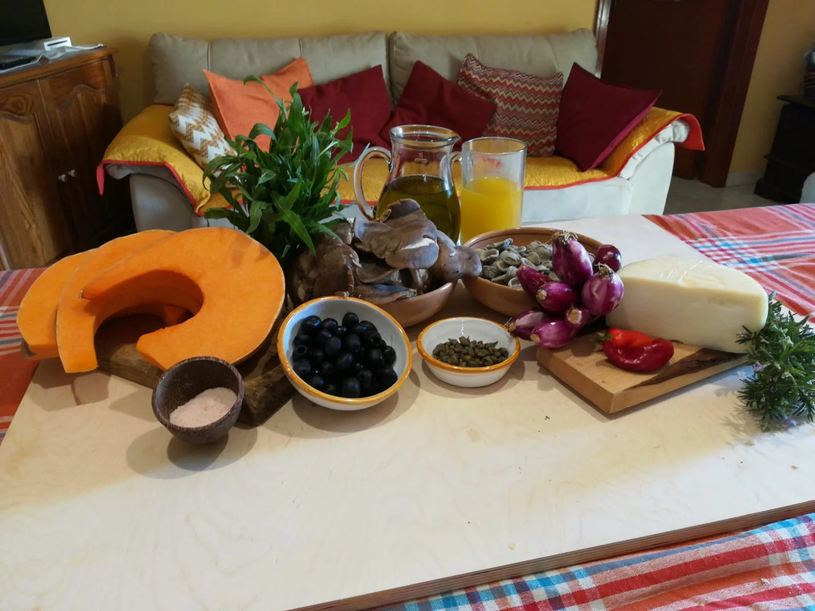 Intanto mettiamo l'acqua a bollire. Inoltre, per ultimare il condimento delle orecchiette, andiamo ad aggiungere i capperi le olive e i funghi, mescoliamo...