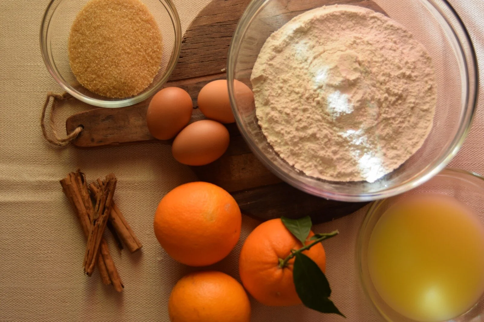 Poi incorporare anche la farina e lievito setacciati, la buccia e il succo di un’arancia, la cannella e amalgamare il tutto. Infine aggiungere anche il burro fuso e mescolare per ottenere un impasto liscio e omogeneo. Lasciare riposare l’impasto per almeno un’ora. Intanto scaldare il forno a 200° C.